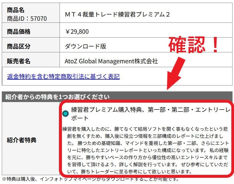 特典が付属していない購入画面から購入しても、特典のダウンロードはできません。