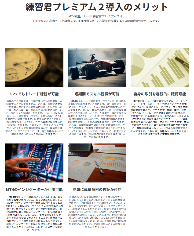 参考までに、【練習君プレミアム公式ページ】に書いていある導入メリットを貼っておきます。